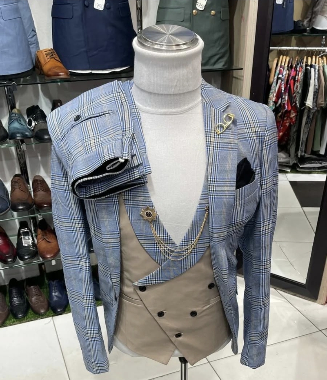 SKU: N/A Categories: Clothing, Men's Fashion Tags: business fashion, classic checkered design, double-breasted vest, elegant suit for men, fashion boutique, formal event clothing, formal wear, groom attire, Looking for a blazer, luxury menswear, Men's 3-piece suit, premium suit collection, sophisticated outfit, stylish plaid blazer, tailored fit, trendy men’s fashion, Wedding Suit